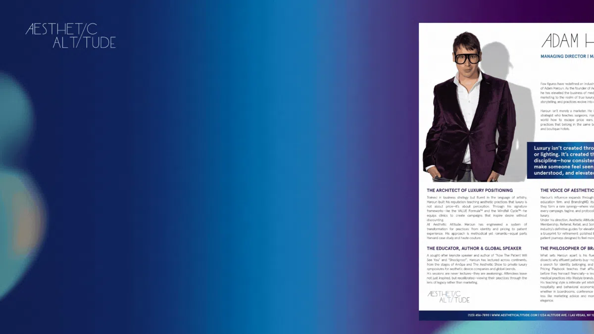Developed by Adam Haroun, the aesthetic industry's undisputed leader in crafting luxury brands and building premium positioning for practices at every stage.