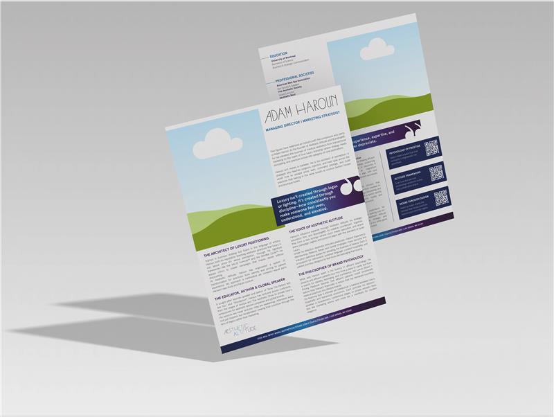 An elegantly structured, double-sided biography that tells your story with restraint, intelligence, and confidence.